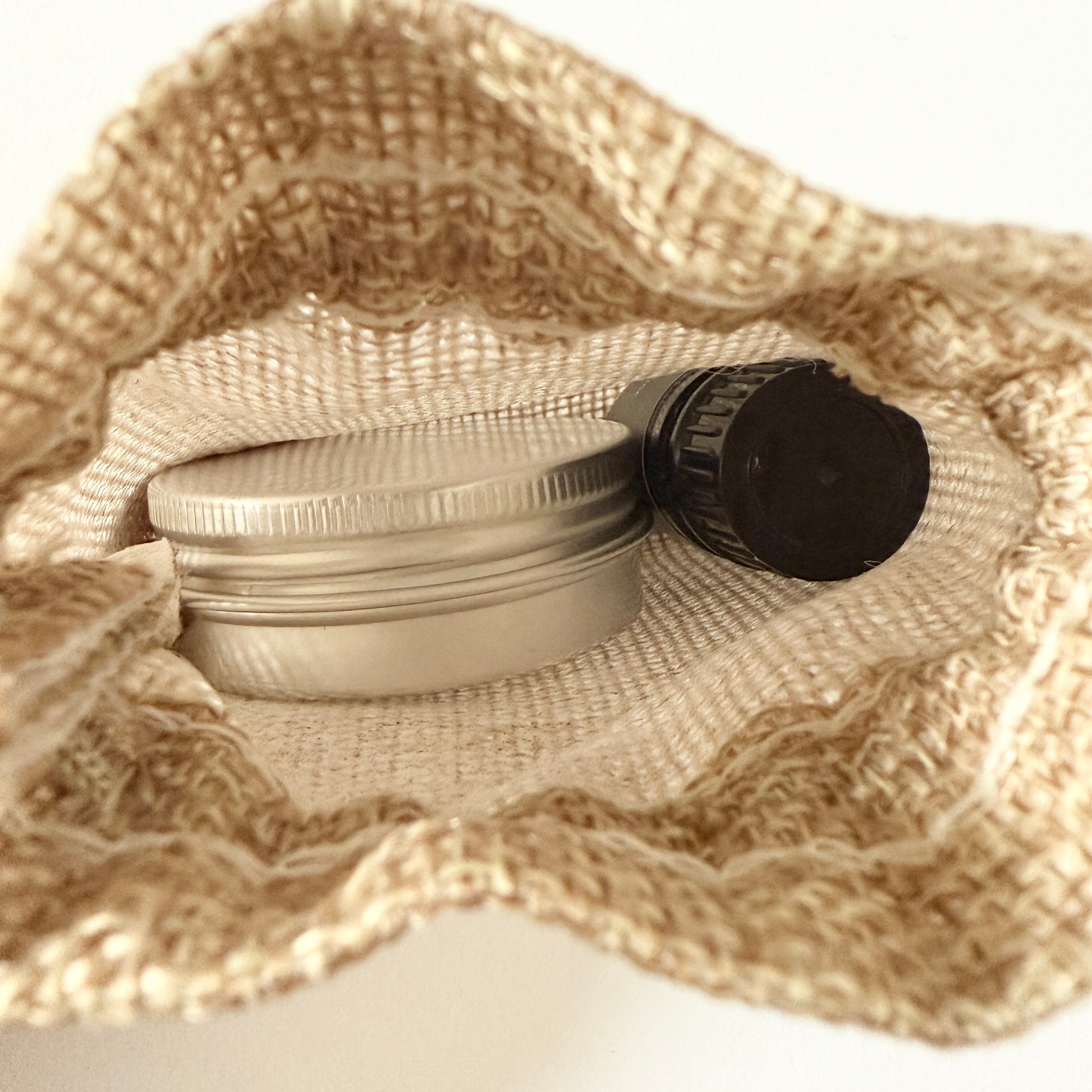 ・缶入り携帯アロマストーン(麻袋付き) 1点